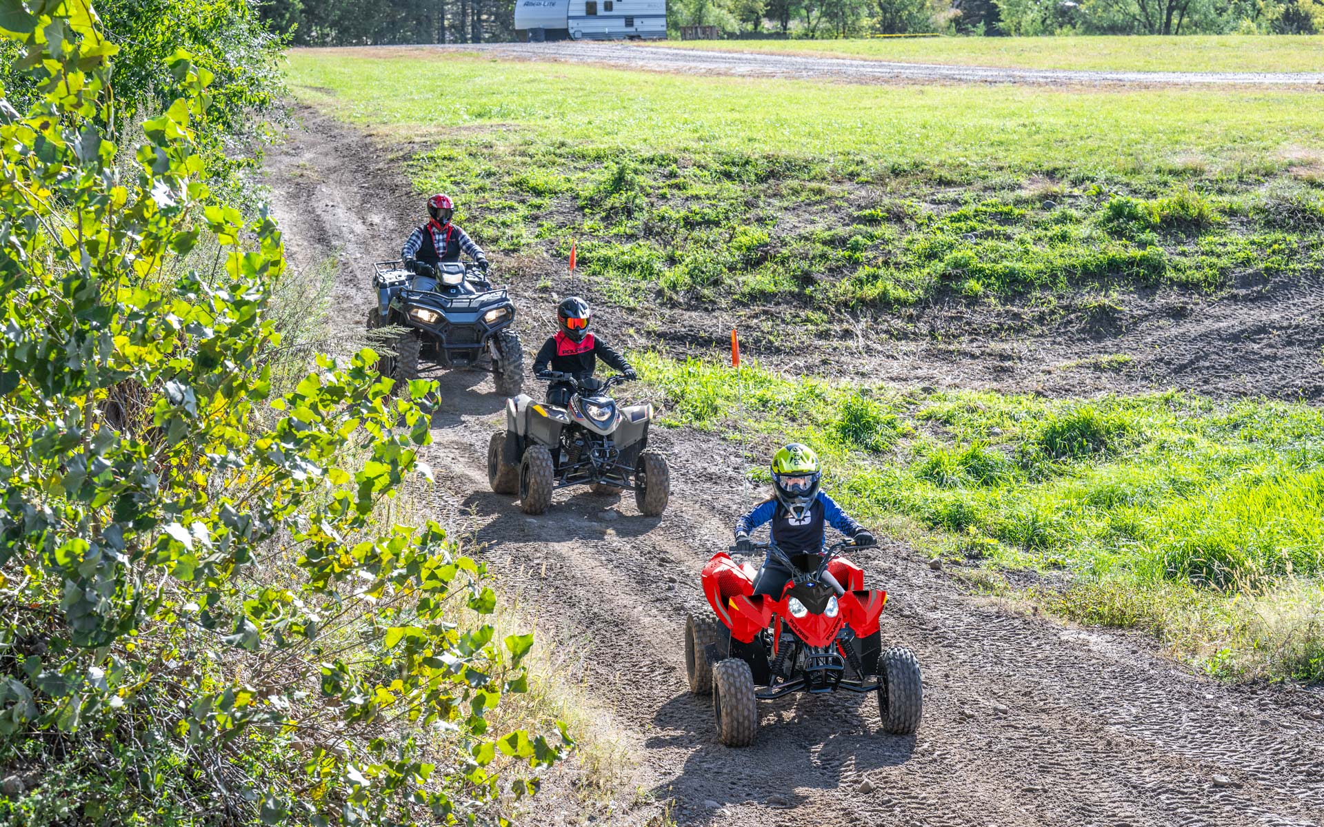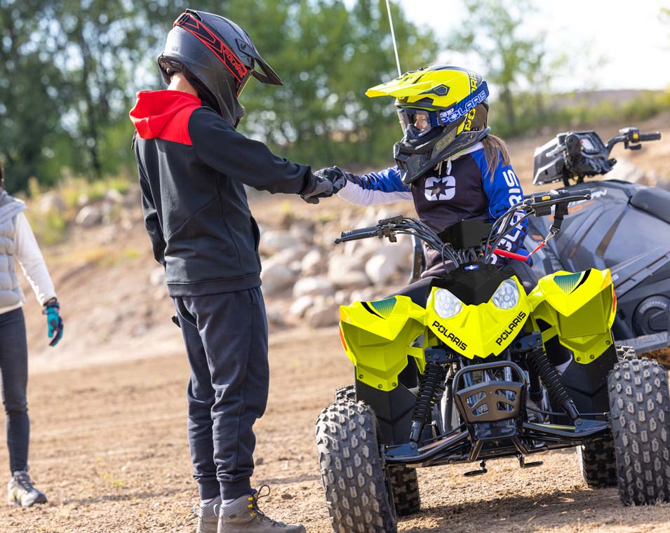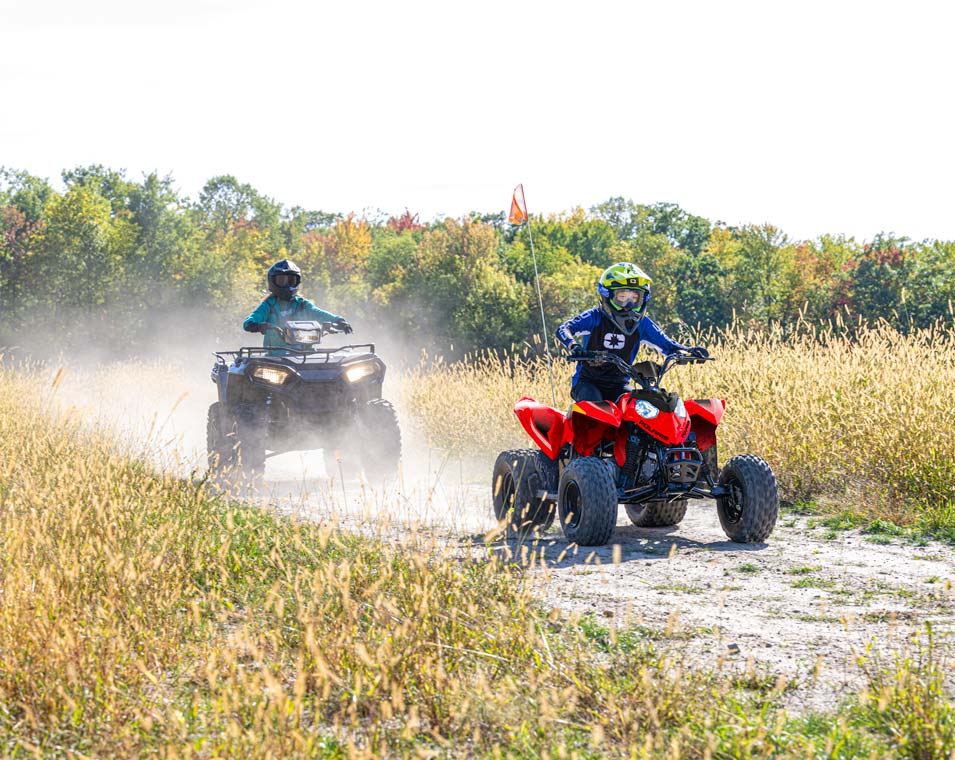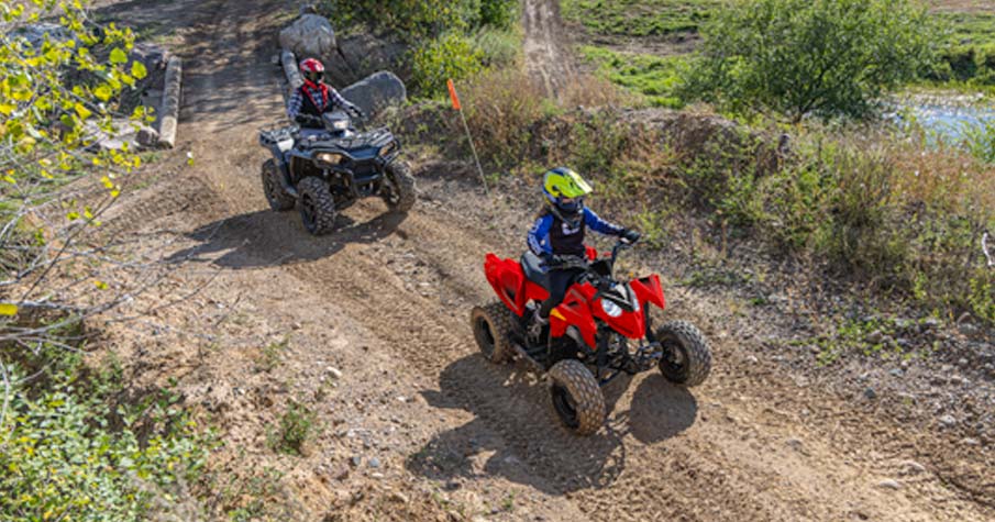 Med en 110cc EFI-motor och tillbehör som gör att yngre förare kan växa med sin ATV. Tillverkad för förare från 10 år och uppåt.